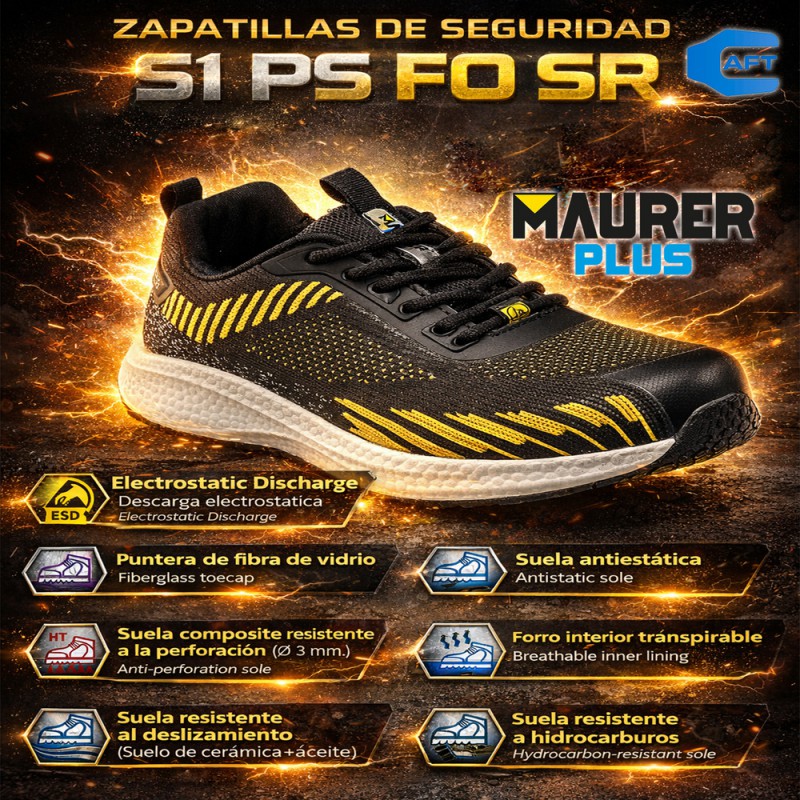 Deportiva Seguridad Maurer S1 Antideslizante con Suela y puntera antiperforación Resistente a los Hidrocarburos
