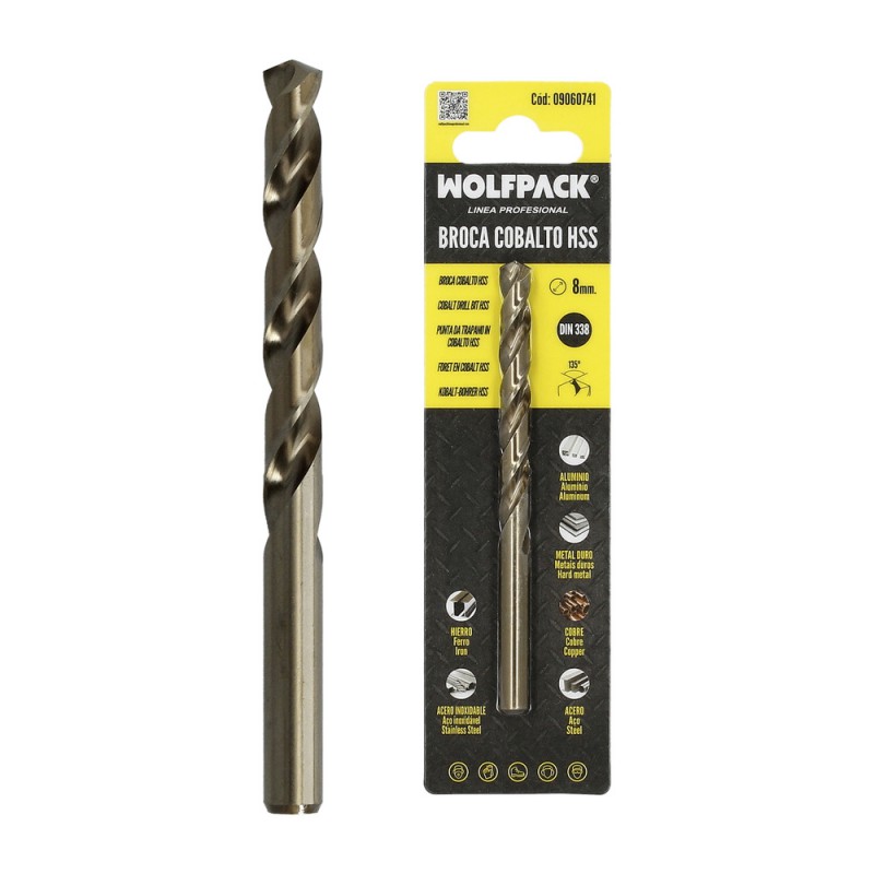 Broca Wolfpack Cobalto Hss Cilindrica 8,00 mm. Blister 1 Unidad.