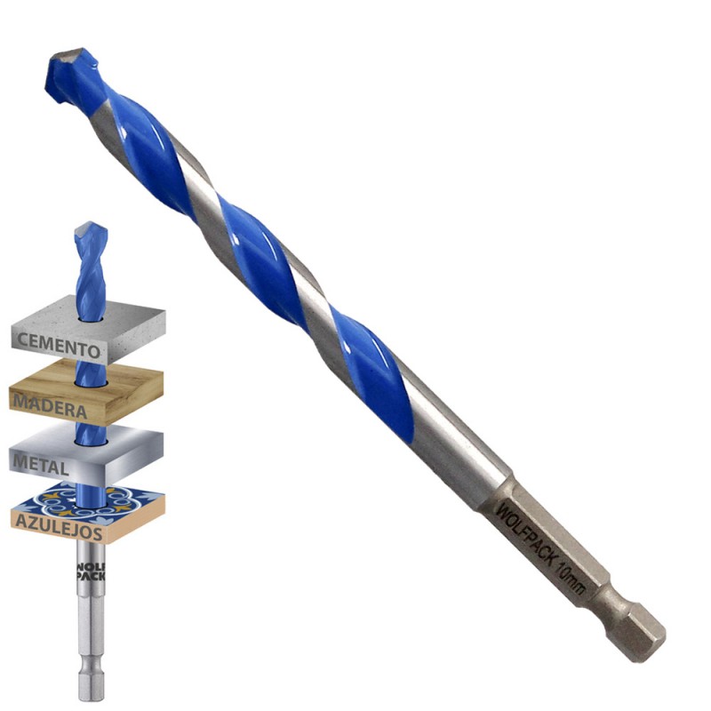 - Apta para la perforación de azulejos, cerámica, mármol, hormigón, metal, madera y plástico.