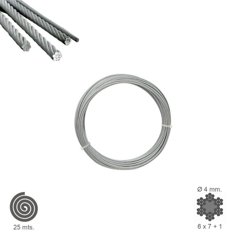 Cable Galvanizado 4 mm. (Rollo 25 Metros) No Elevacion