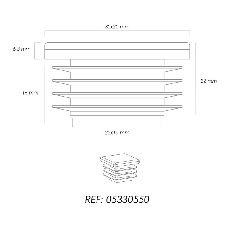 - Medida exterior: 30x20 mm.
