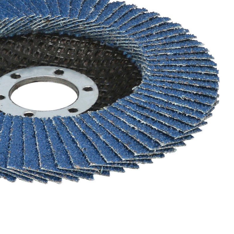 - Aletas del disco con circonio y un angulo de 10º. El circonio le aporta una duración mayor. Disco de lija para amoladora de 115 mm.