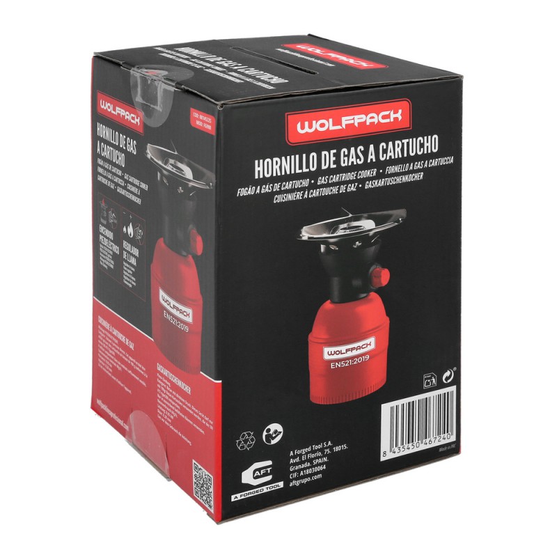 - Funciona con cartuchos de gas butano de 190gr que cumplan la norma EN 417 type 200.