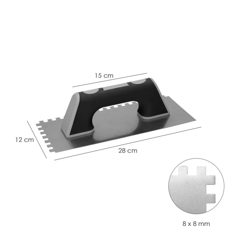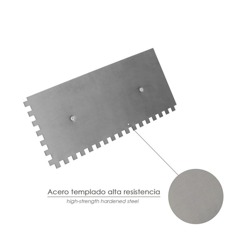 - También conocida como llana, plana o fratas, indicado para extender cementos, cementos cola, yesos, morteros, etc.